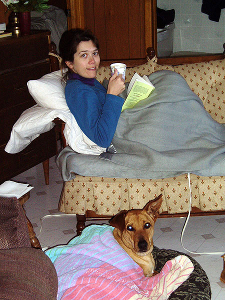 About this photo:It can be cold in Maryland in January, particularly in the mountains. Here Amy and Molly show how to cope. |